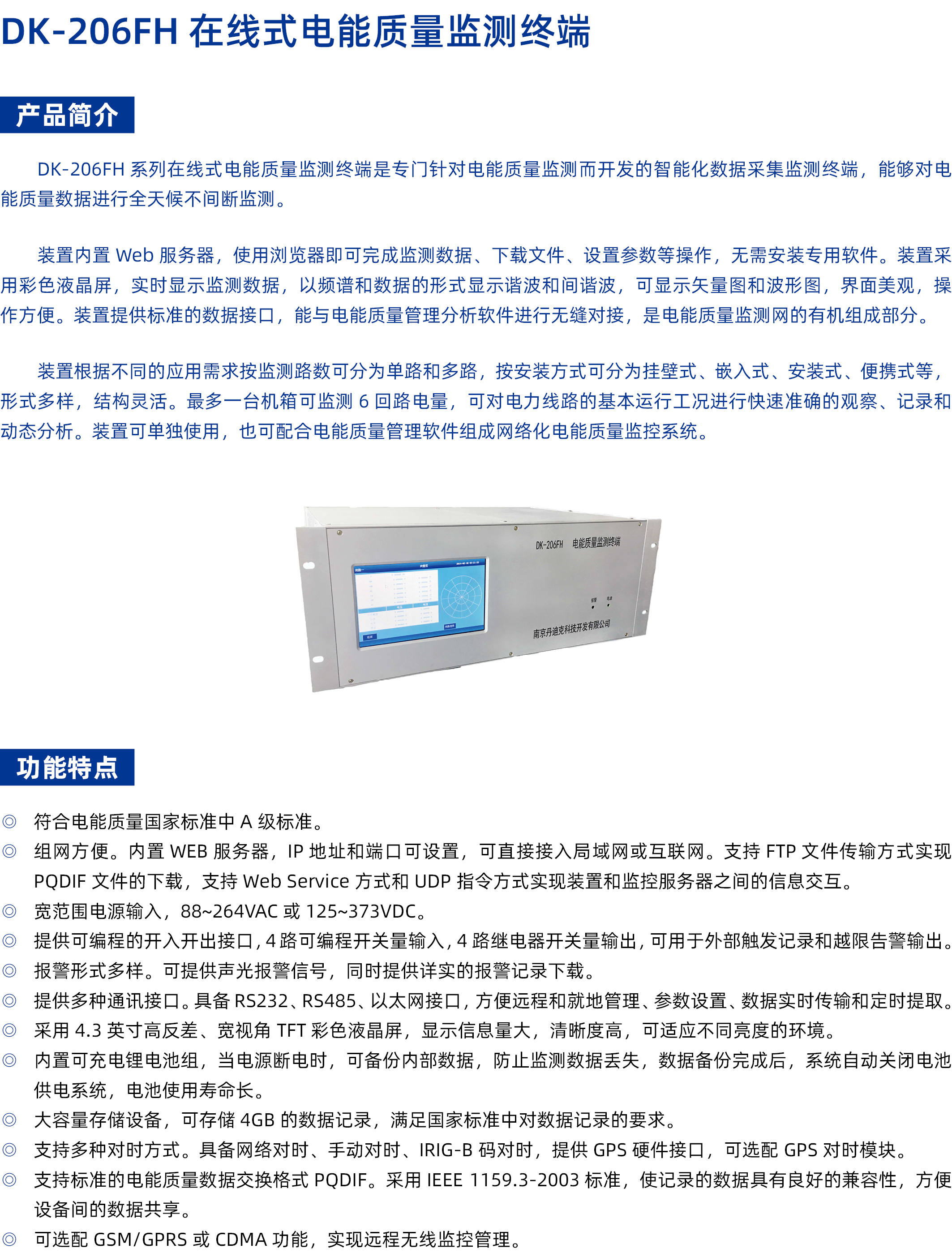 DK-206FH 电能质量监测终端