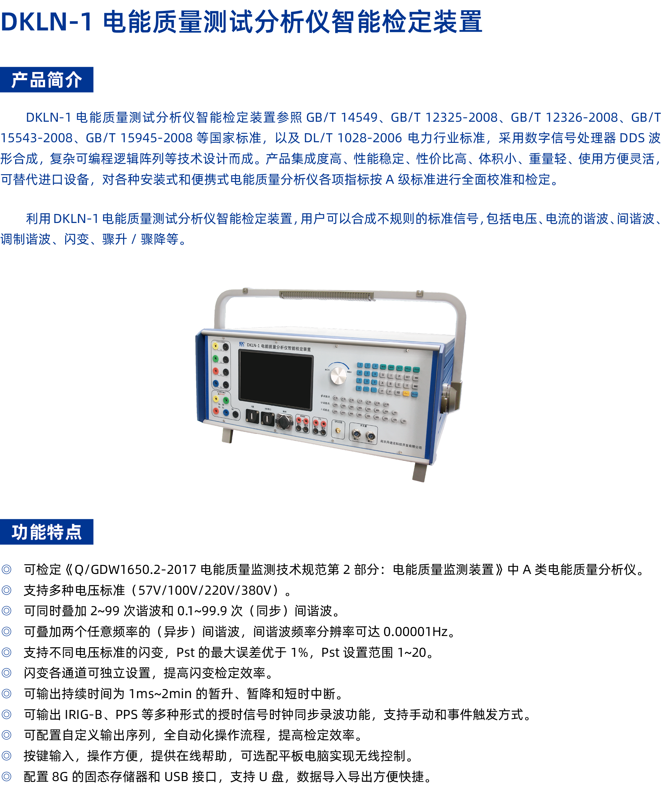 DKLN-1 电能质量测试分析仪智能检定装置