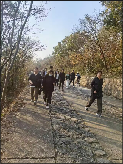 下午1点,全体员工陆续前往紫金山脚下的范鸿仙墓停车场集合。到达后,先签到同时进行热身运动,并在停车场空地留下了珍贵的合影,记录下了这一难忘时刻。